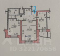 Общая площадь квартиры составляет 66 кв. м, из которых 35.7 кв. м — жилая площадь, а кухня - 11.1 кв. м. Высота потолков — 2.73 метра.