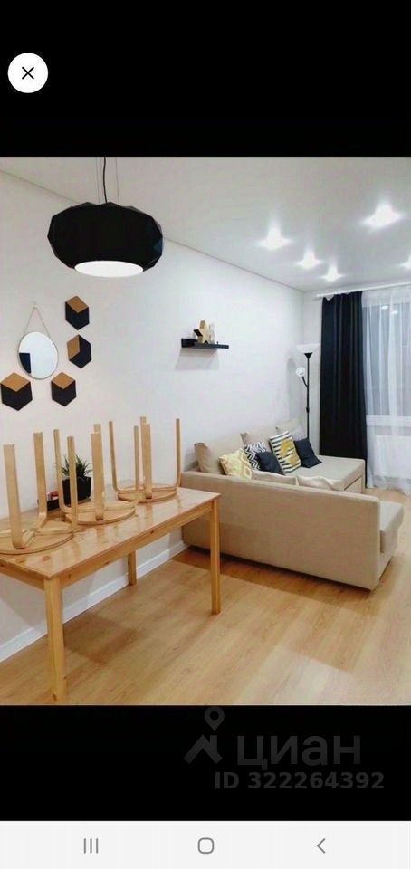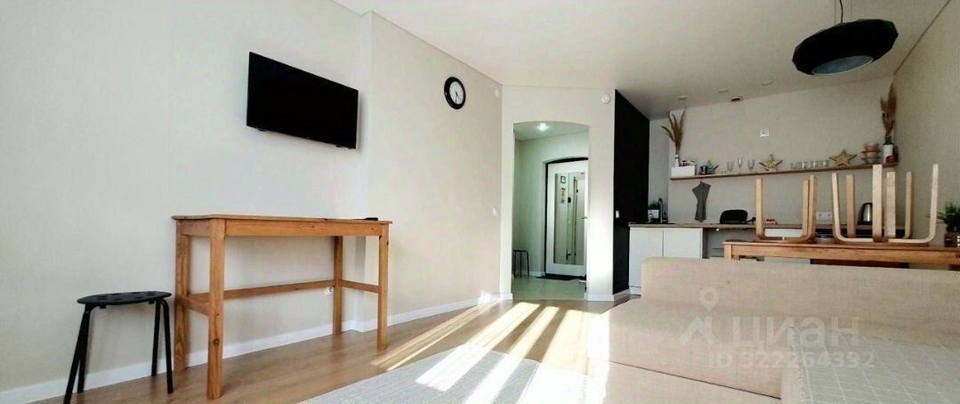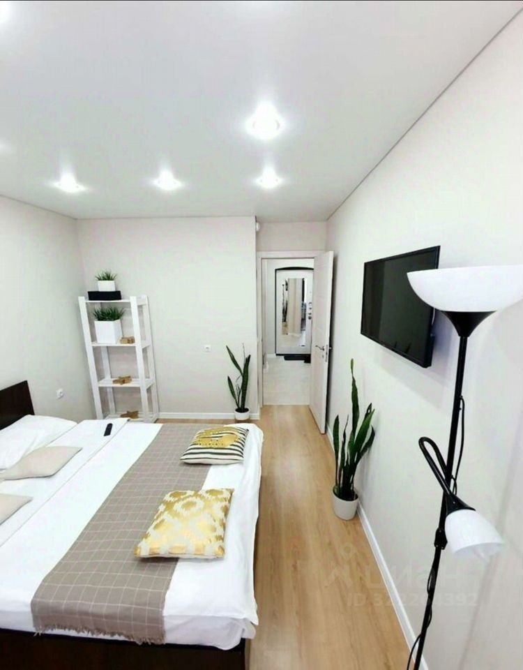 Евродвушка. В комнате кровать, из комнаты выход на балкон. В гостиной небольшой кухонный гарнитур с элекрической варочной панелью,холодильником, обеденная зона, зона отдыха с угловым диваном. В санузле хорошая стиральная машина, установлен водонагреватель. Все что в квартире есть остаеться.