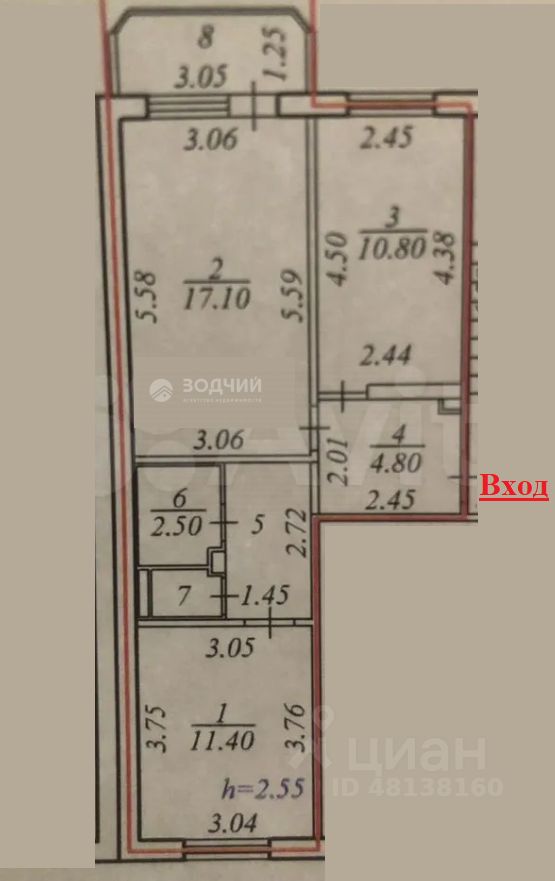 55,5 м²