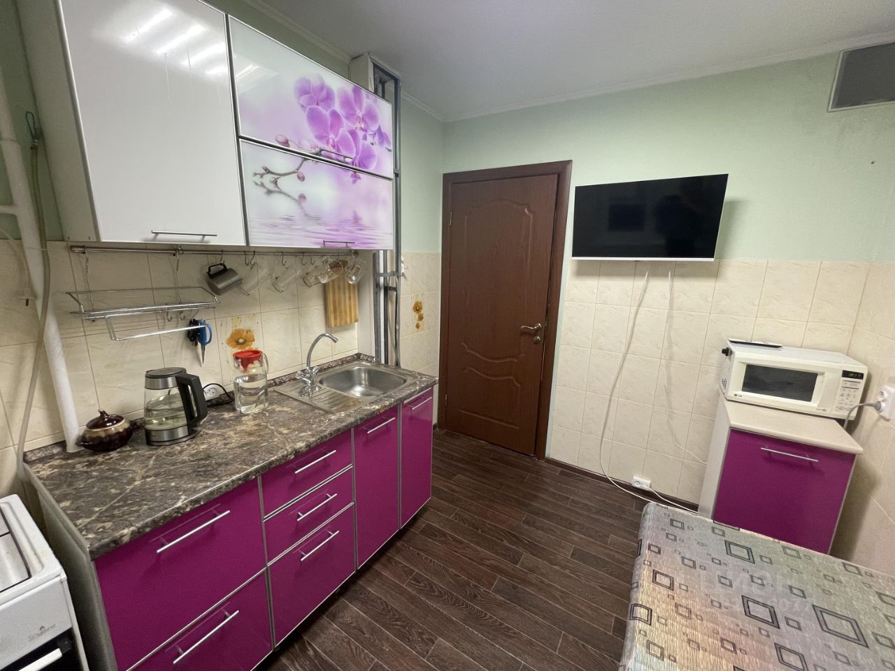 Квартира теплая, в здании есть пассажирский лифт и мусоропровод, поэтому можно без труда подниматься на нужный этаж и избавляться от бытовых отходов.