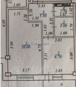 16,6 м²