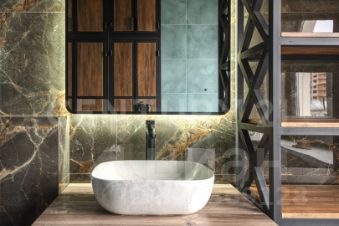 Ванна в керамограните,сантехника Итальянская с отдельно стоящей ванной с видом на волгу.