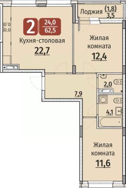 Продается 2-комн. квартира, 64,25 м²