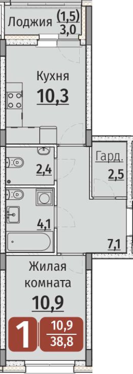 Площадь кухни10,3 м²
