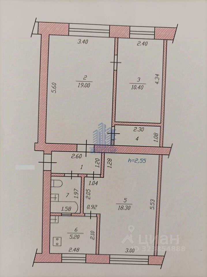 Жилая площадь составляет комфортные 47,7 кв.м., а кухня занимает 6 кв.м., предоставляя достаточно места для кулинарного творчества и семейных ужинов.