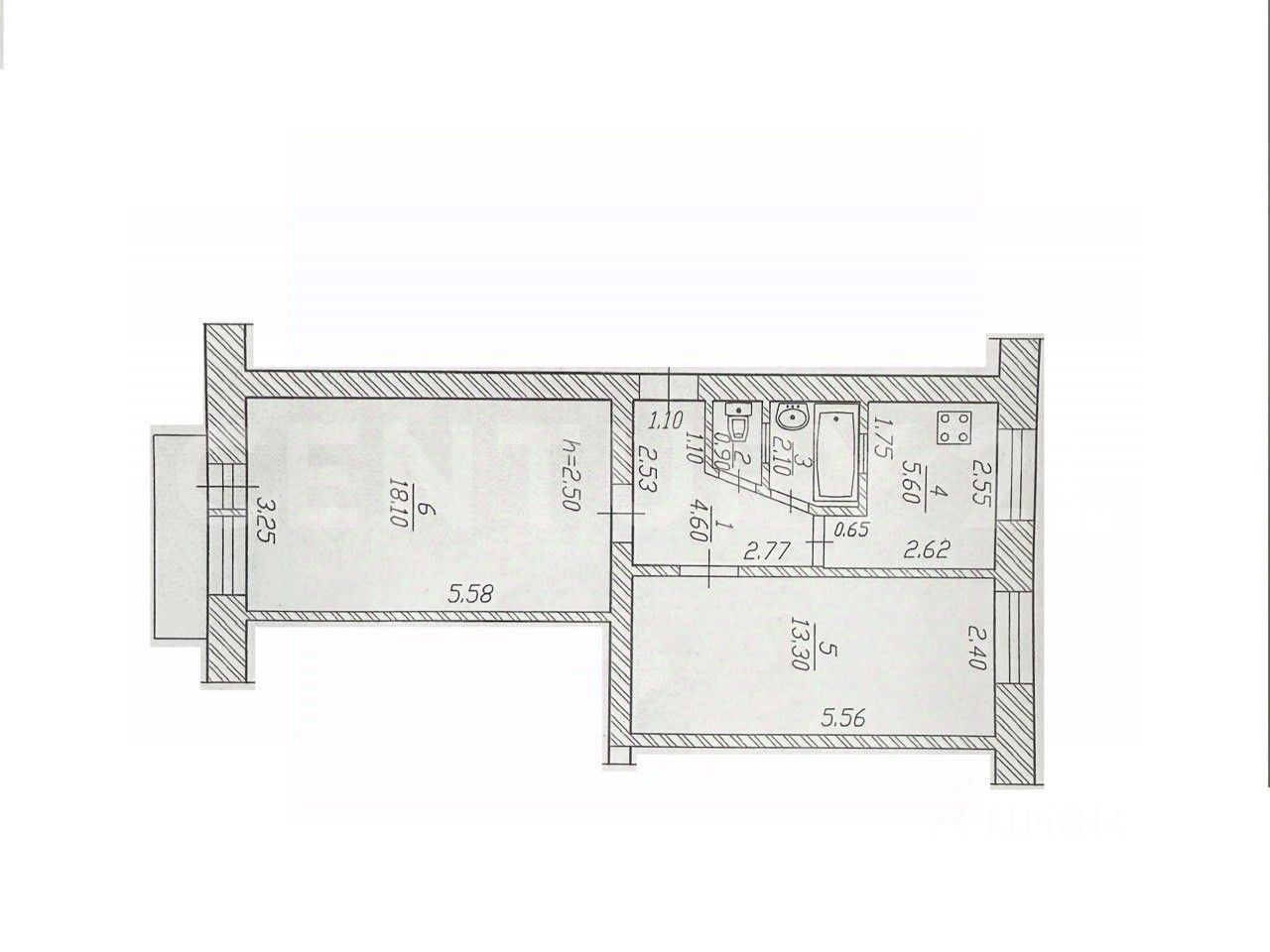высота потолки 2.5 м.