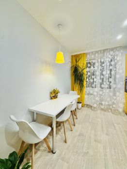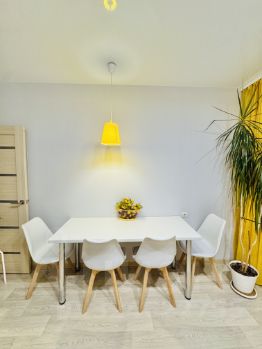 Квартира на 1 этаже, над теплым подвалом и по всей площади квартиры бонусом ТЕПЛЫЕ ПОЛЫ, которые регулируются по температуре коллектором на каждую комнату, площадь квартиры 40,8 кв.м. Остаётся абсолютно всё, что на фото! вся мебель и техника, тюли и шторы и т.д. В квартире проживали с 2018 года, но не на постоянной основе. Окна выходят на красивый бульвар и новую современную школу, далеко от шумной дороги. 2 детских сада в двух шагах, третий строится через дорогу в Welltown, ледовый дворец , магазины все под носом, прямо в доме есть и магазин и пекарня, ПВЗ ВБ, озон, аптека в соседнем доме.