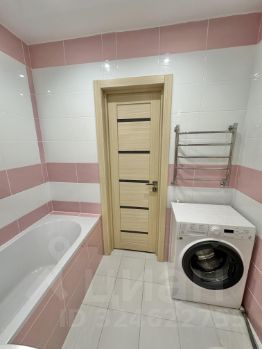 Ванная комната 3,9 кв.м. Акриловая ванна, раковина с тумбой, стиральная машина.