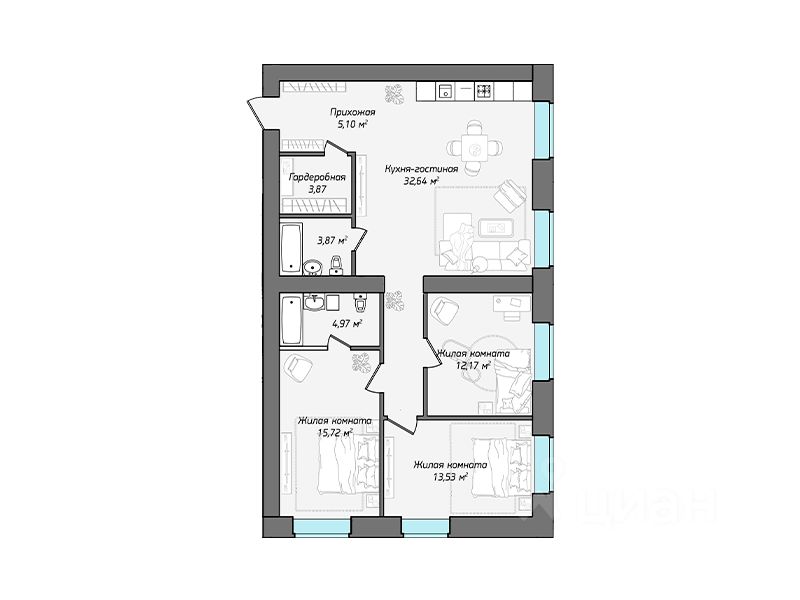 Продается 4-комн. кв-ра площадью 97.00 кв.м на 10 этаже 10 этажного кирпичного дома в Академия от ГК "Ваши окна". Откройте для себя новый уровень жизни в самом сердце Чебоксар — жилой комплекс "Академия"! Наш проект — это воплощение элегантности и комфорта, гармонично вписанный в исторический облик столицы Чувашии. Мы создали не просто дом, а настоящее произведение архитектурного искусства, которое продолжает лучшие традиции городской застройки.