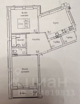 69,6 м²