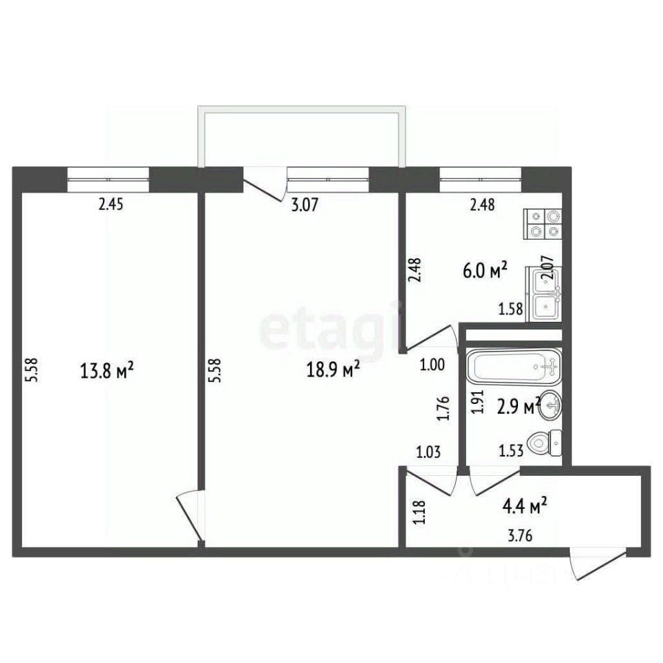 Продается двухкомнатная квартира в кирпичном доме, сочетающая практичность планировки и выгодное расположение.