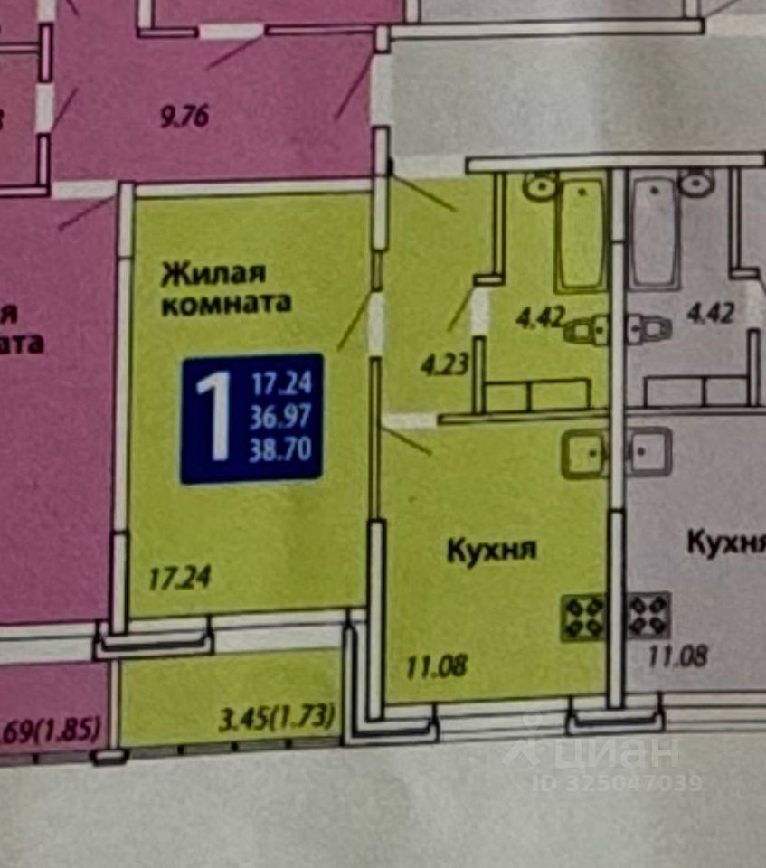 Продаю большую однокомнатную квартиру S -38,7 в строящемся доме правильной формы