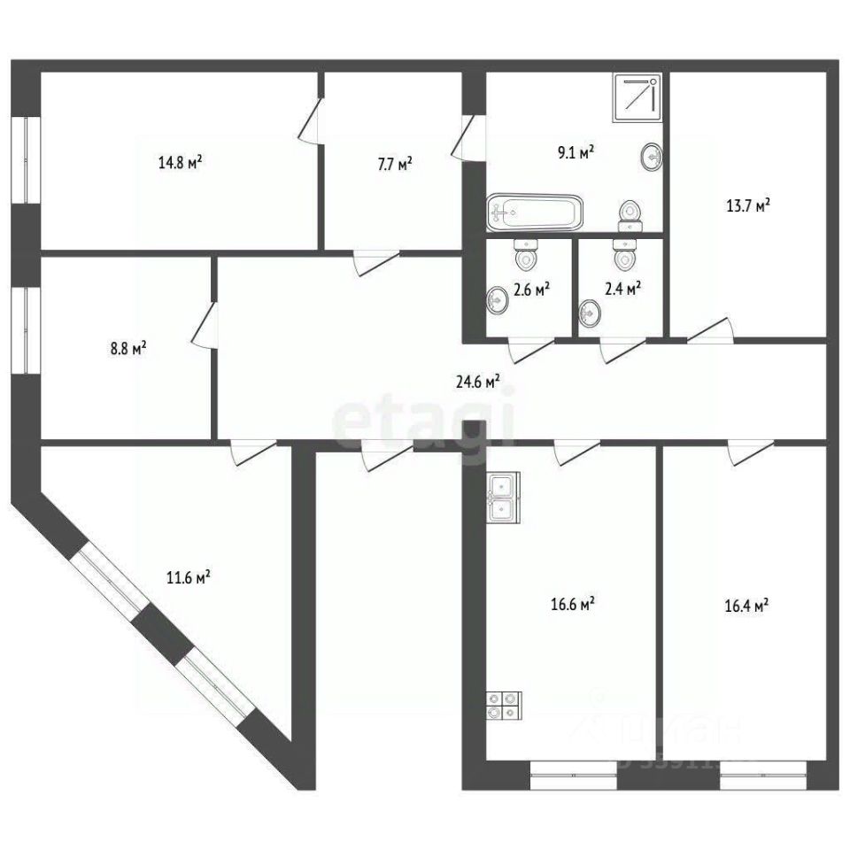Просторная квартира площадью 160 кв. м. предлагает рациональную и комфортную планировку для жизни большой семьи.