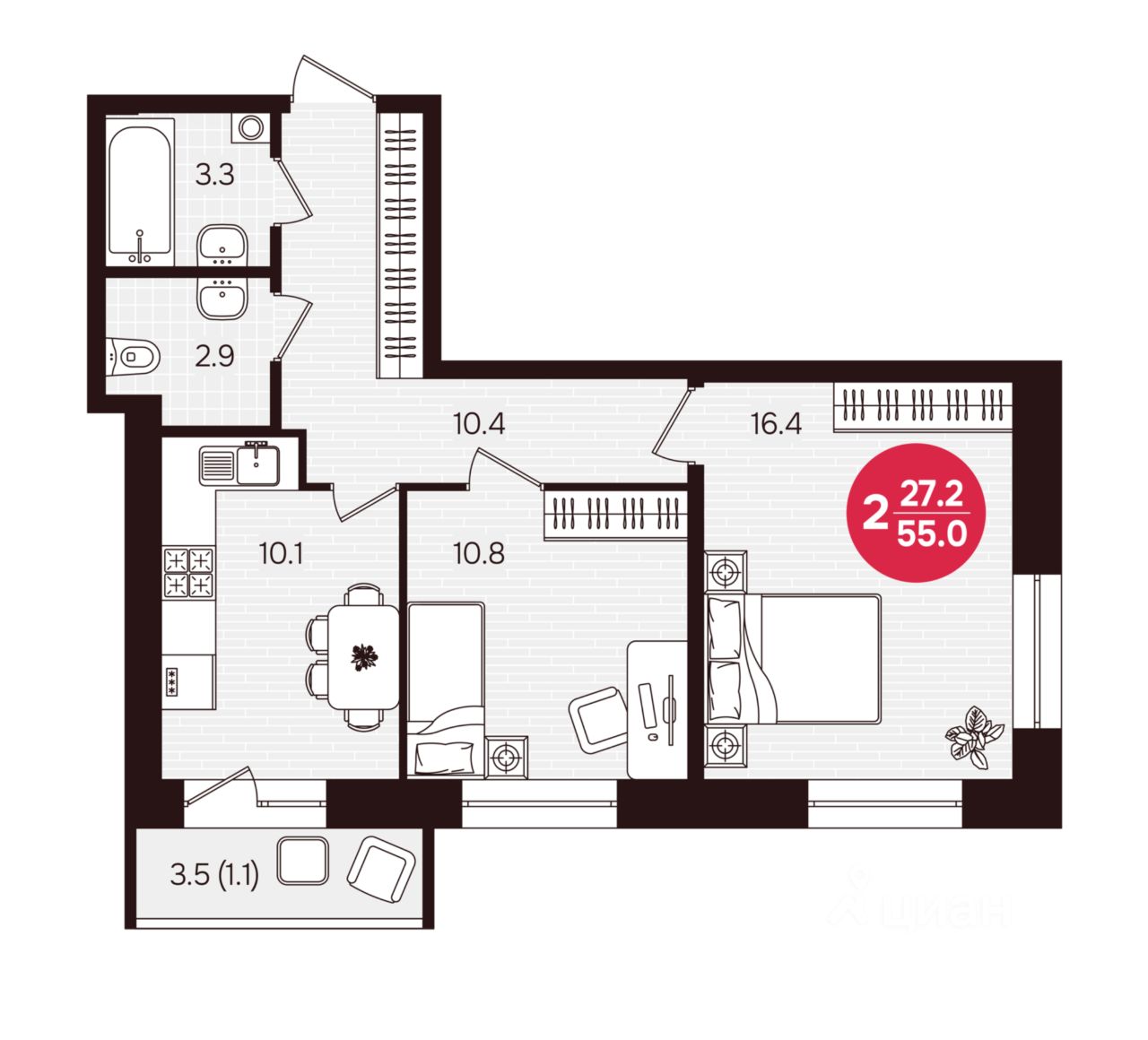 Общая площадь55 м²