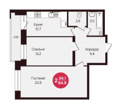 Общая площадь64,9 м²