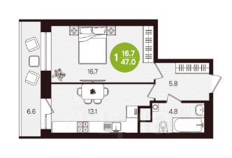Жилая площадь16,7 м²