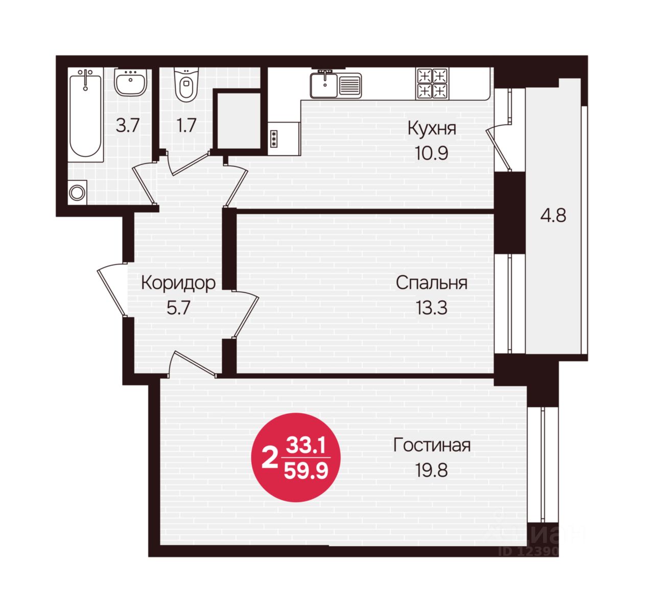 Общая площадь59,9 м²