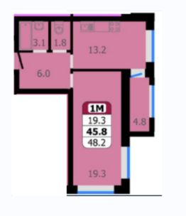 Продаётся 1-комнатная квартира в строящемся доме (поз.2 блок-секции А,Б), срок сдачи: II-кв. 2026, общей площадью 48.2 кв.м., на 7 этаже.