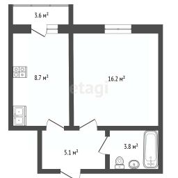 Продается однокомнатная квартира площадью 35.6 кв.м в современном кирпичном доме, сданном в эксплуатацию в 2014 году.