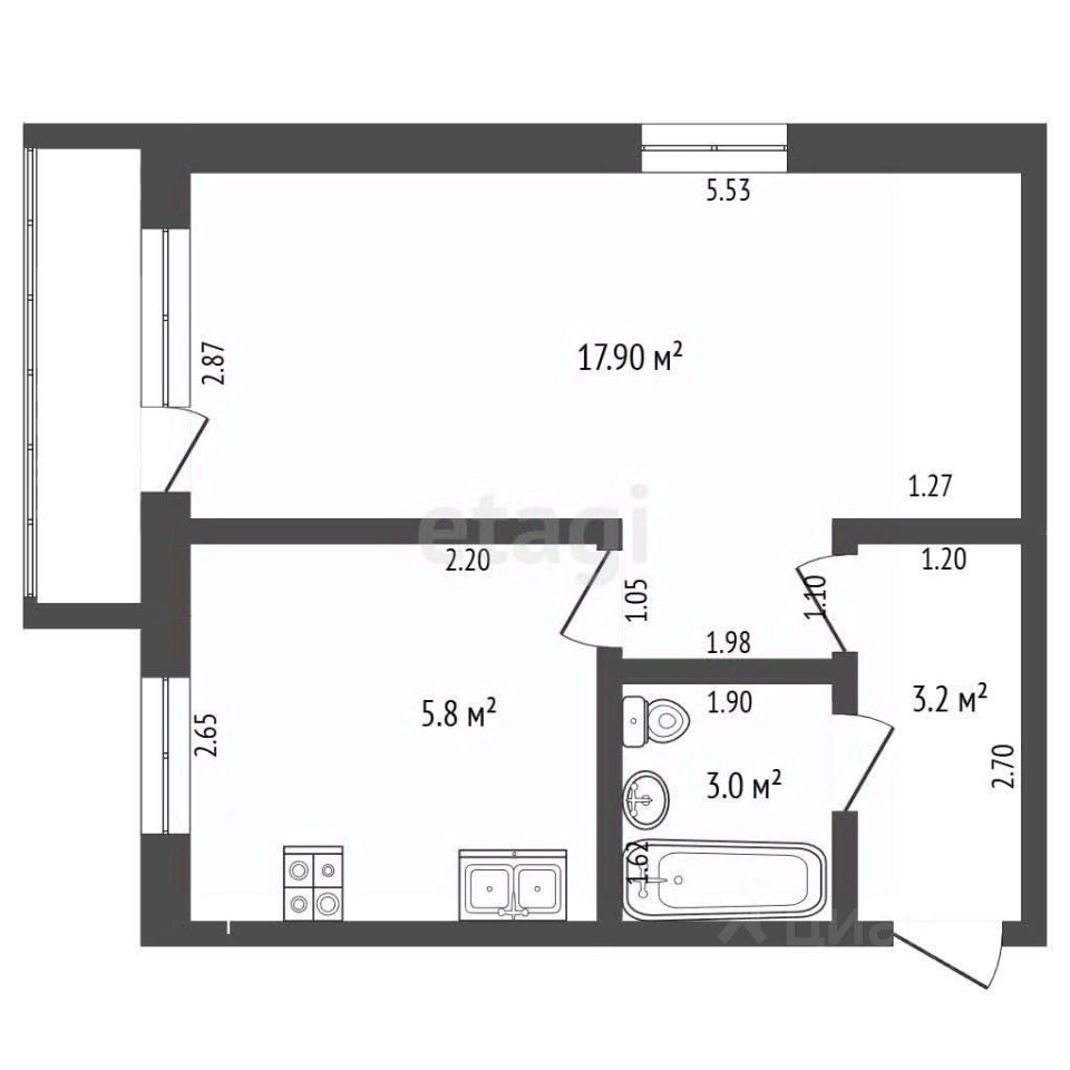 17,9 м²
