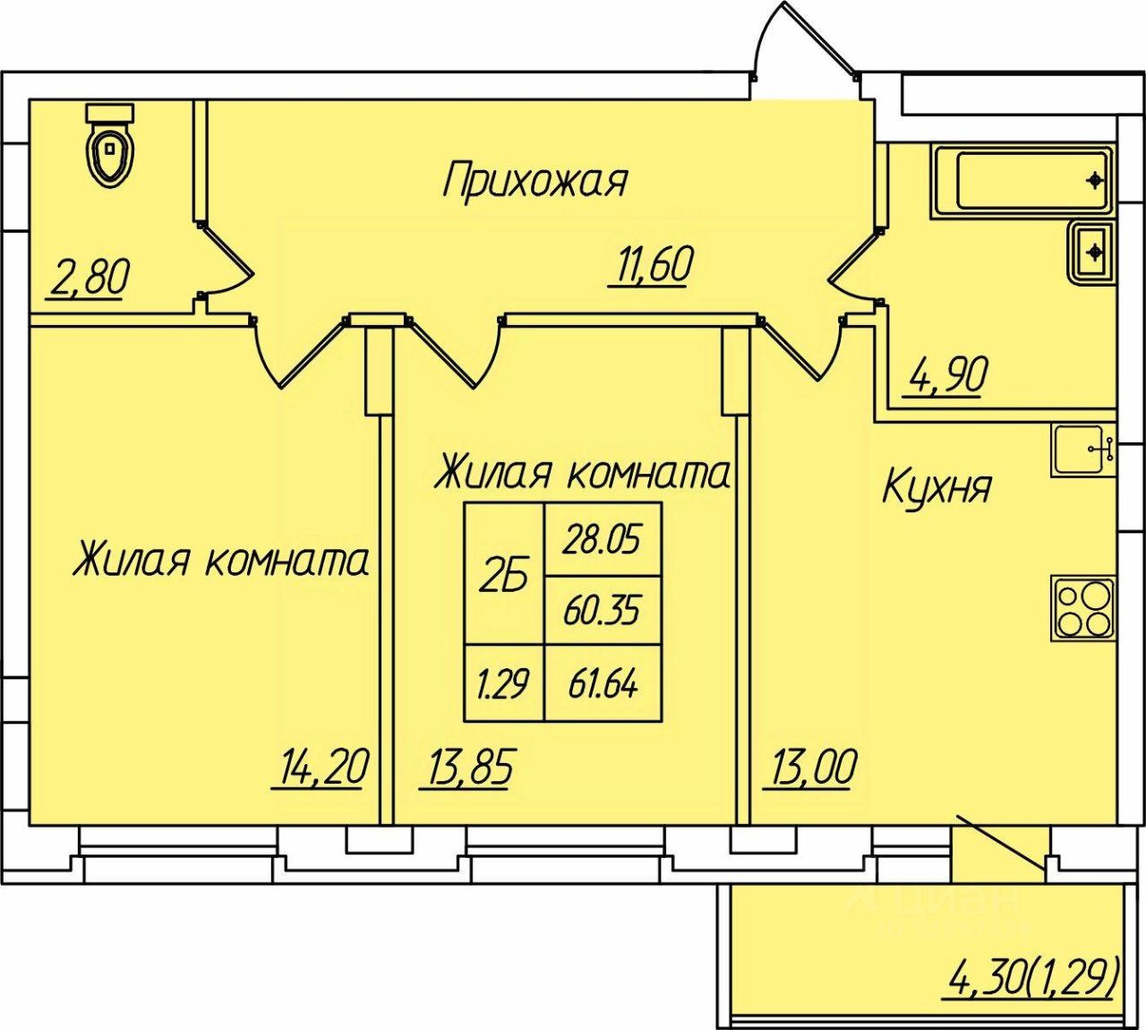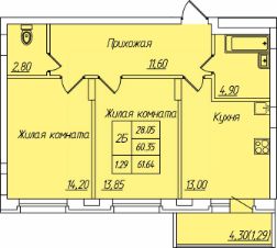 Продаётся 2-комнатная квартира в строящемся доме (поз.8 (б/с Г,Д,Е)), срок сдачи: II-кв. 2027, общей площадью 61.64 кв.м., на 1 этаже. Жилой комплекс ПРИТЯЖЕНИЕ это комфорт и эстетика в каждом метре.
