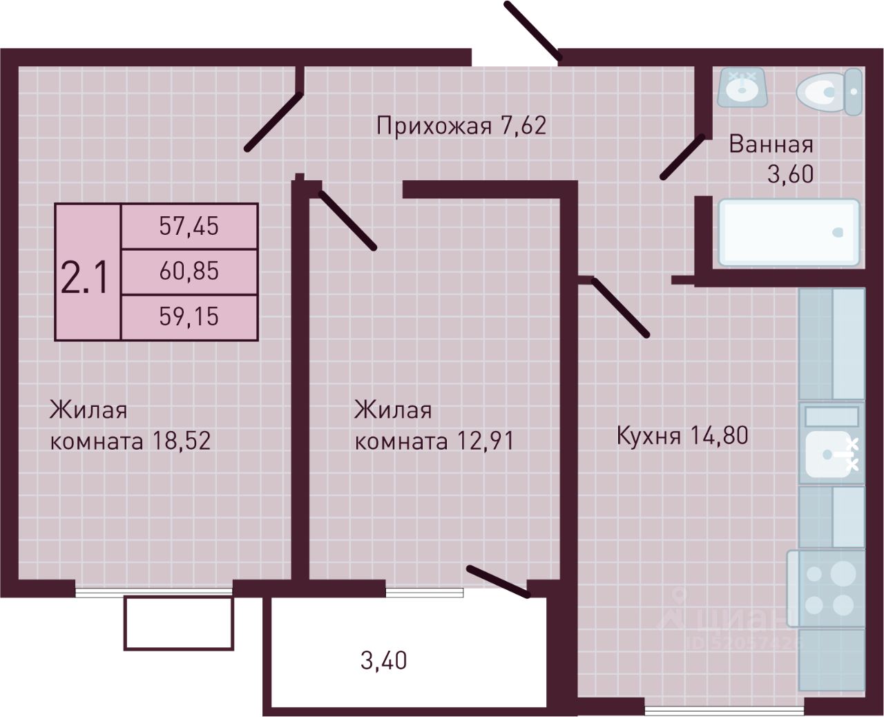 59,15 м²