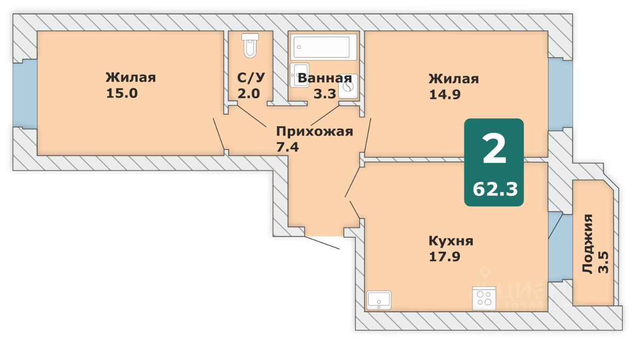 Общая площадь62,3 м²