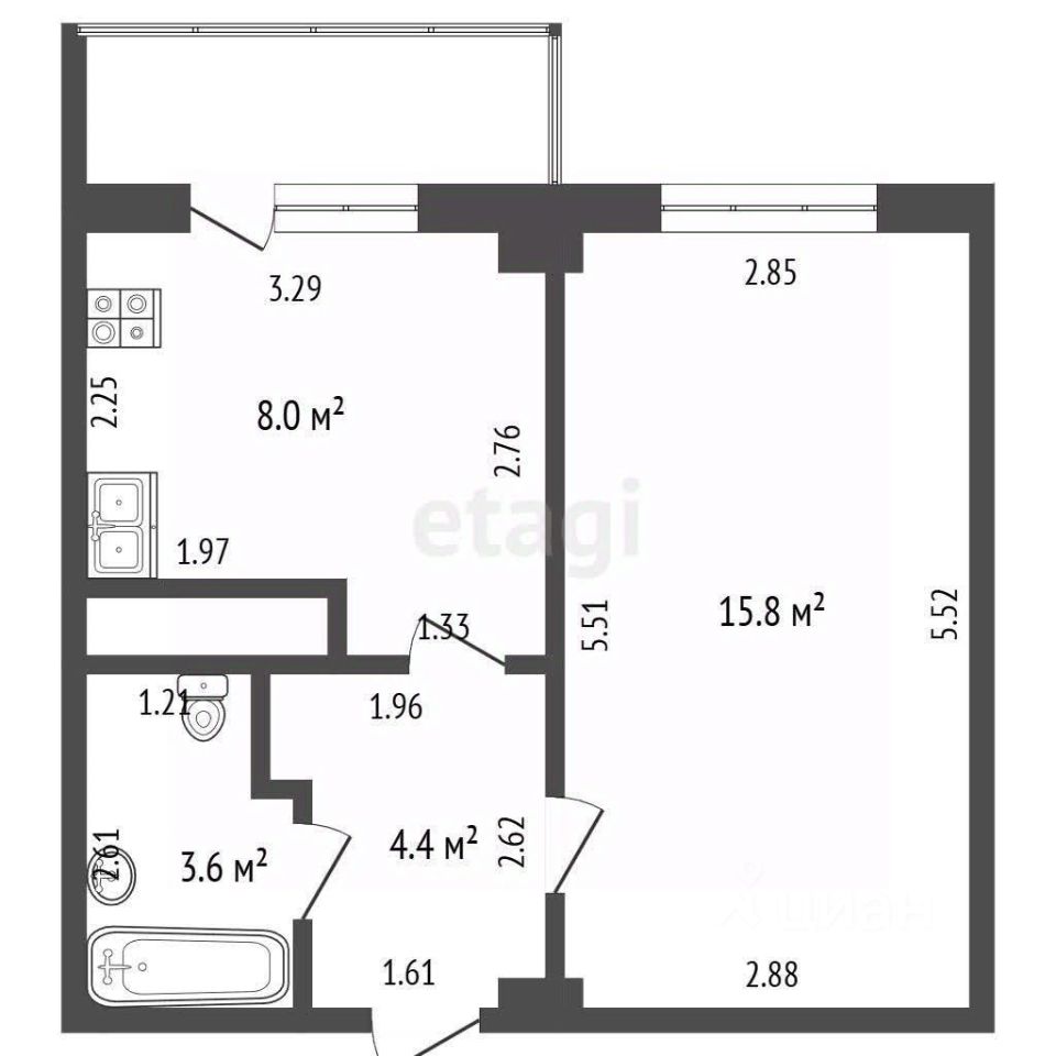 Однокомнатная квартира площадью 31,8 кв.м. в готовом состоянии для заселения отличается рациональной планировкой, где изолированная прихожая с гардеробной ведет в просторную гостиную-спальню и на большую кухню, что позволяет удобно разместить обеденную группу. Дополнительное пространство и отличное освещение обеспечивает балкон с современным остеклением.