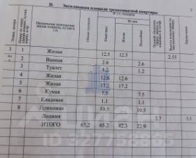 В квартире общей площадью 65.2 кв.м.+ лоджия 2.7 кв.м., общий тамбур на 2 квартиры. Комфортная планировка(распашонка): просторная кухня- 7.5 кв.м; зал-17.5 кв.м., комната-12.5 кв.м., спальня-12.6 кв.м., сан.узел раздельный-1.2 кв.м., ванная комната -2,6 кв.м., прихожая- 10.5 кв.м., кладовая-1.1 кв.м.