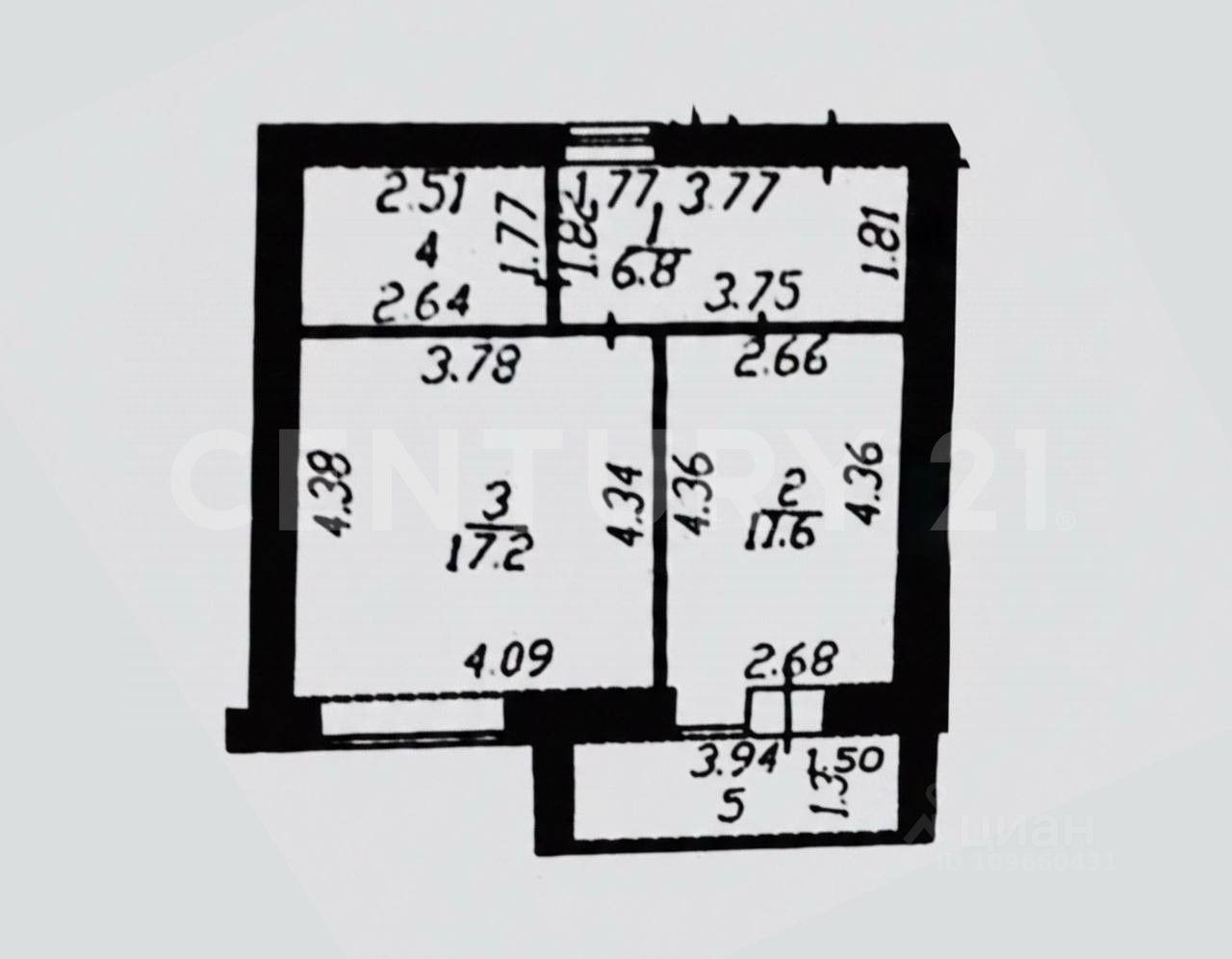 Жилая площадь17,2 м²