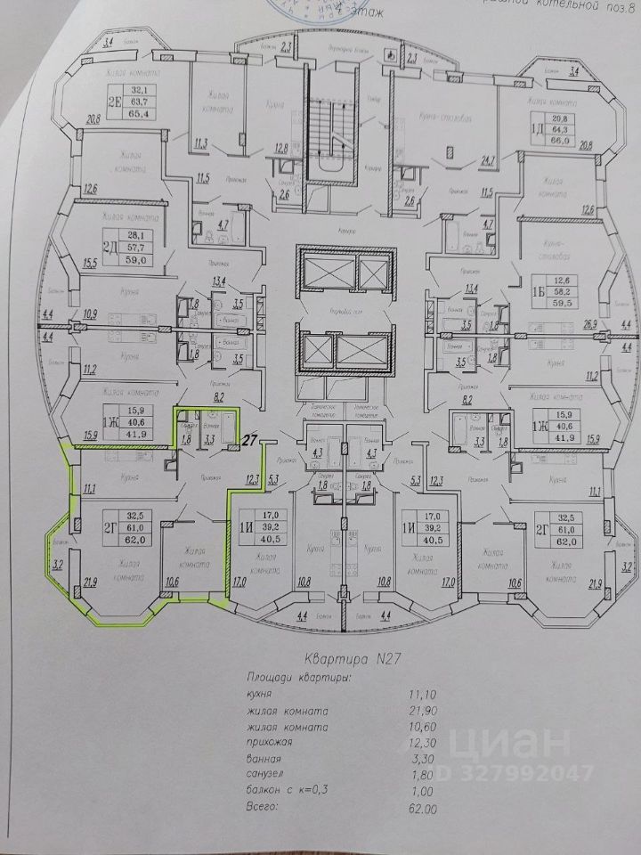 62 м²