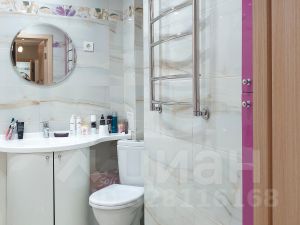 Санузел совмещённый, увеличенной площади: предусмотрено место для стиральной машины, установлен тёплый пол и качественная ванна. Тёплый пол также частично сделан в коридоре.