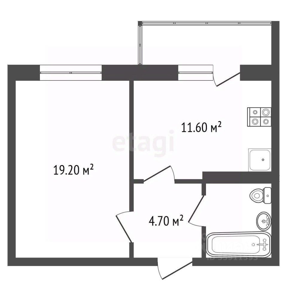 Планировка отличается практичностью: просторная гостиная 19.2 кв.м органично сочетается с изолированной кухней 11.9 кв.м, что позволяет комфортно размещать гостей и создавать функциональные зоны.