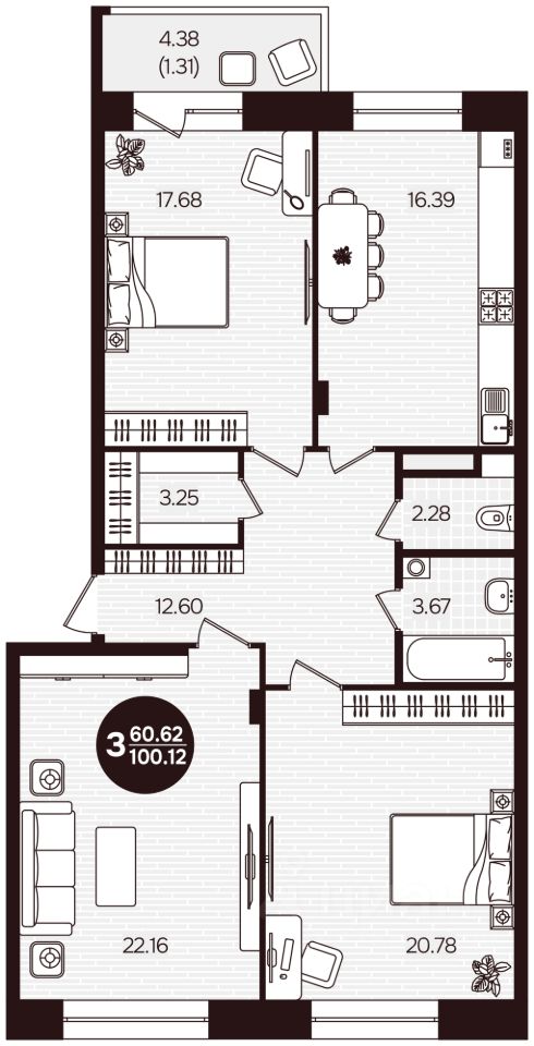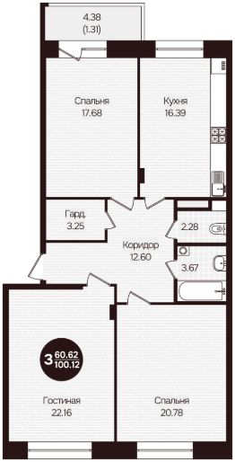 Общая площадь100,12 м²