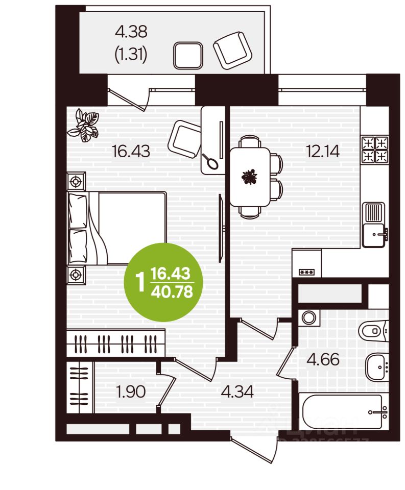 Общая площадь40,78 м²