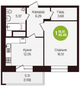 Общая площадь45,49 м²