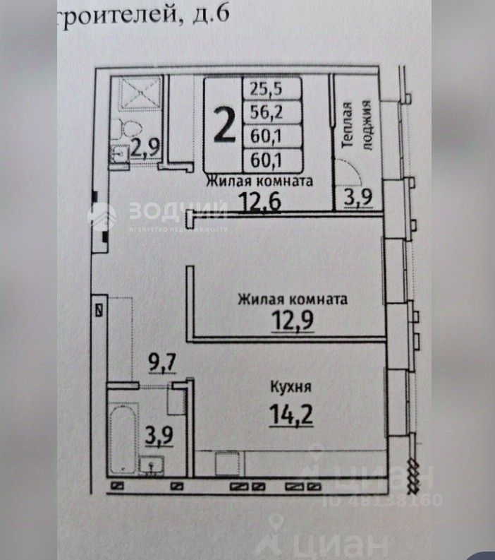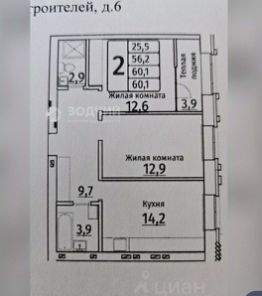 Продается просторная 2-комнатная квартира в новом доме, расположенном по адресу Чувашская Республика, Чебоксары, проспект Тракторостроителей, 6. Общая площадь квартиры составляет 60.4 кв. м, из которых 25.5 кв. м отведены под жилую зону, а кухня занимает 14.2 кв. м. Квартира находится на 9 этаже 9-этажного дома, построенного в 2024 году.