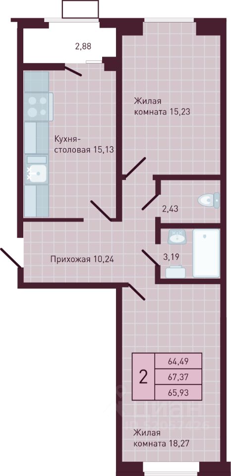 2-комн. квартира, 65,93 м²