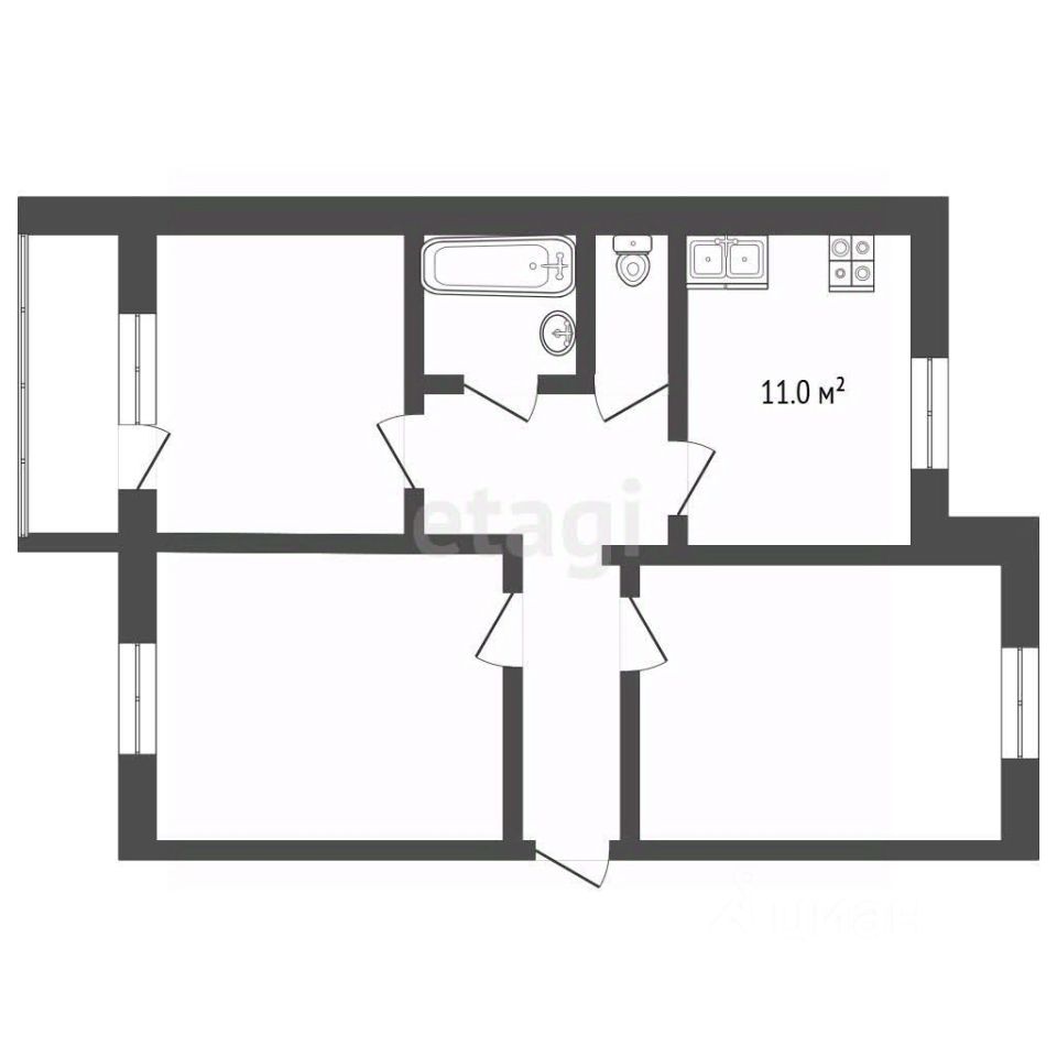 Продаётся трёхкомнатная квартира в панельном доме на 3 этаже.