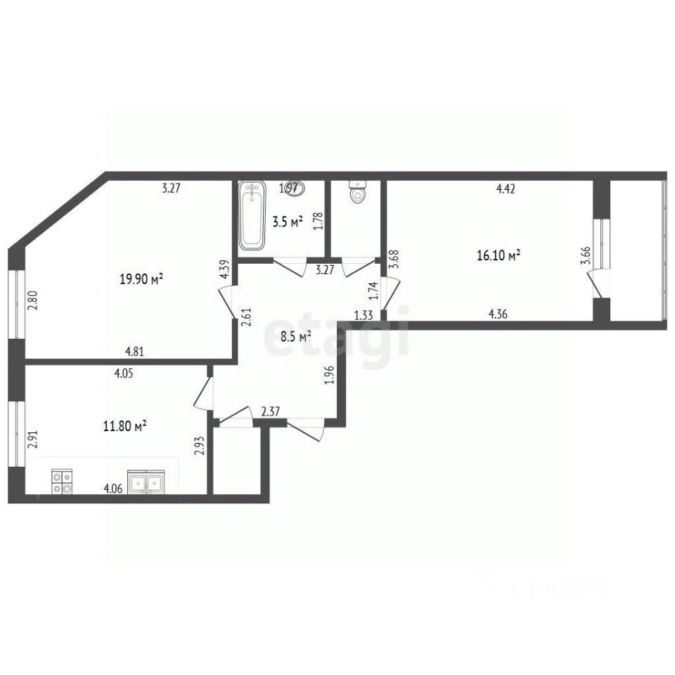 Часть мебели (кухонный гарнитур и угловая прихожая) остаётся новым хозяевам.