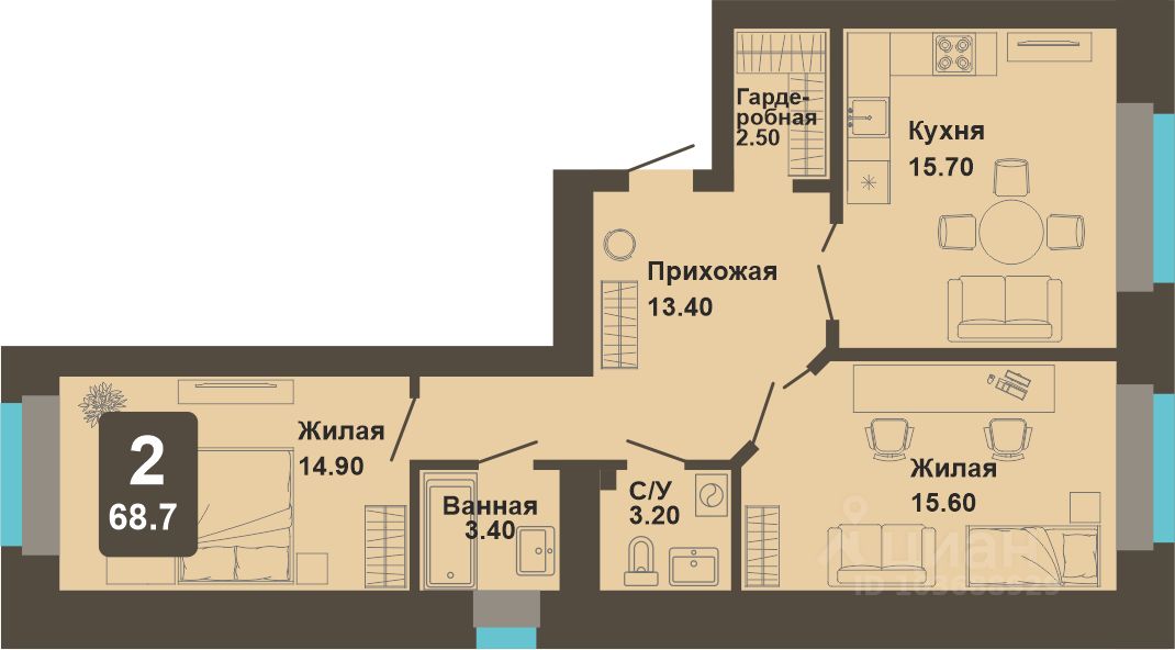 68,7 м²