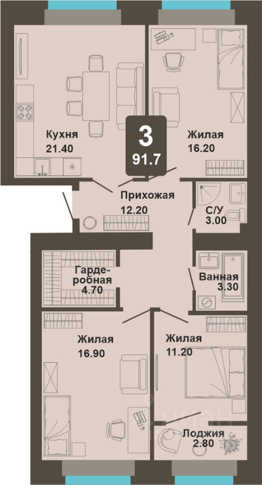 91,7 м²