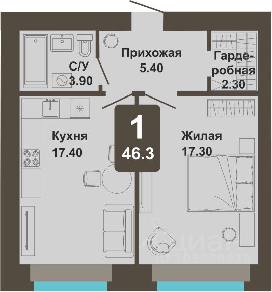 Общая площадь46,3 м²