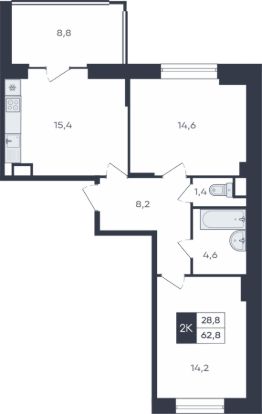 Продаётся 2-комнатная квартира в строящемся доме (поз. 11), срок сдачи: I-кв. 2027, общей площадью 62.8 кв.м., на 6 этаже. Жилой комплекс "Университетский-2" представляет собой группу кирпичных зданий переменной этажности 10-17 этажей.