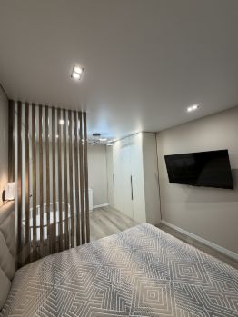 Квартира с дизайнерским ремонтом, выполненным с использованием качественных материалов. Продуманный интерьер и стильная мебель создают уютную атмосферу, в которой приятно находиться. На кухне установлена вся необходимая техника, что позволяет сразу же начать пользоваться всеми удобствами. Санузел оформлен в современном стиле и оснащен всем необходимым.