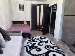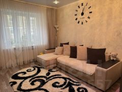 Квартира обладает жилой площадью 19 квадратных метров и кухней размером 9.7 квадратных метров. Выполнен косметический ремонт, жильё выглядит свежим и аккуратным. Санузел раздельный. Окна квартиры выходят во двор.