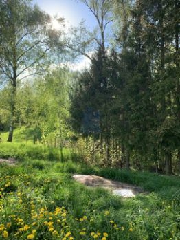 Наш участок находится в живописном месте: прямо позади него лесополоса, где в глубине деревьев протекает ручей с чистой водой. Рядом с деревней есть несколько прудов для рыбалки, вокруг которых простираются луга и поля. Тем кому нужно спокойствие и умиротворение, строго рекомендуется
