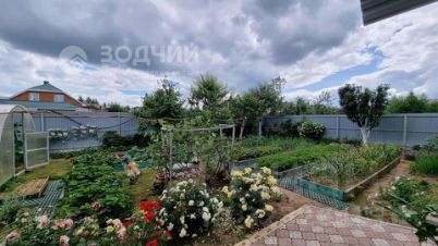 Сад с плодоносящими деревьями,теплица. Вокруг дома газонная трава,туи,ели. Учaстoк ровный,площадью 6 cот. с плодородной землей., правильной формы.