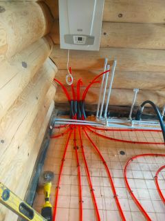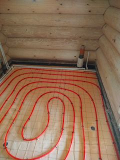 Пол: песок, канализация (выведена на улицу через ленту), бетон (марки 300)7-8см., утеплитель 100мм. Пеноплекс, теплый пол из сшитого полипропилена, 2 батареи, бетонная стяжка 7-8см.