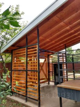Конструктивная особенность дома: Фундамент ж/б свайный с ростверком, стены, перекрытия и покрытие каркасно- панельные заводского исполнения (СИП 174 - 224 мм). Кровельное покрытие мягкая черепица. Окна ПВХ, тройное остекление. Наружная отделка сайдинг. Два крыльца, балкон, беседка с камином. За домом забетонирована площадка под хозяйственное помещения 20м2 (возможности не ограничены: мастерская, сауна, бассейн, зимний сад, комната для гостей...).